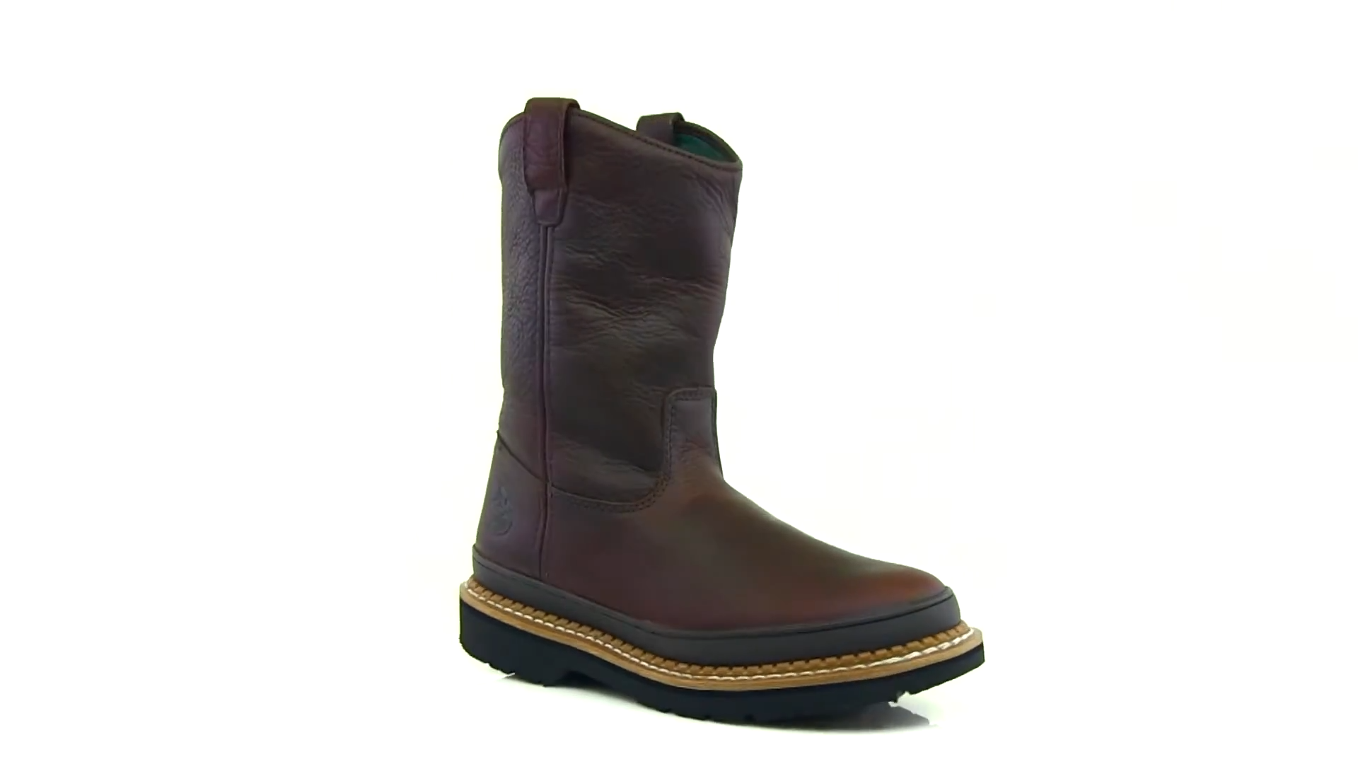 For tough men, tough work boots are a must. Meet the Georgia® Giant Wellington Pull-on work boot. The soggy brown pull on work boot is comfortable and sturdy. It's exactly what you need in your day to day work life.