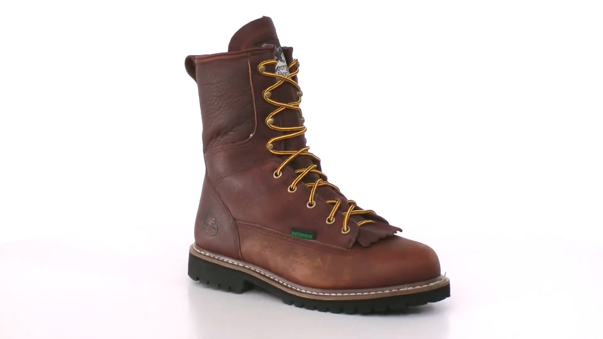 The rich brown boot has Goodyear® welt construction for maximum durability. It has a full-grain leather upper for long-lasting quality and a great look. The lace-up boot has an abrasion-resistant rubber "Georgia Logger" outsole that's oil-resistant.