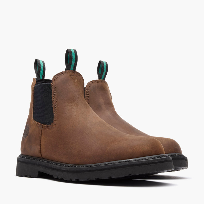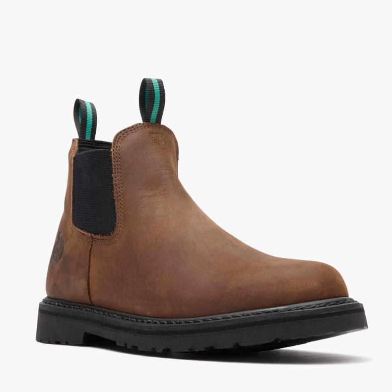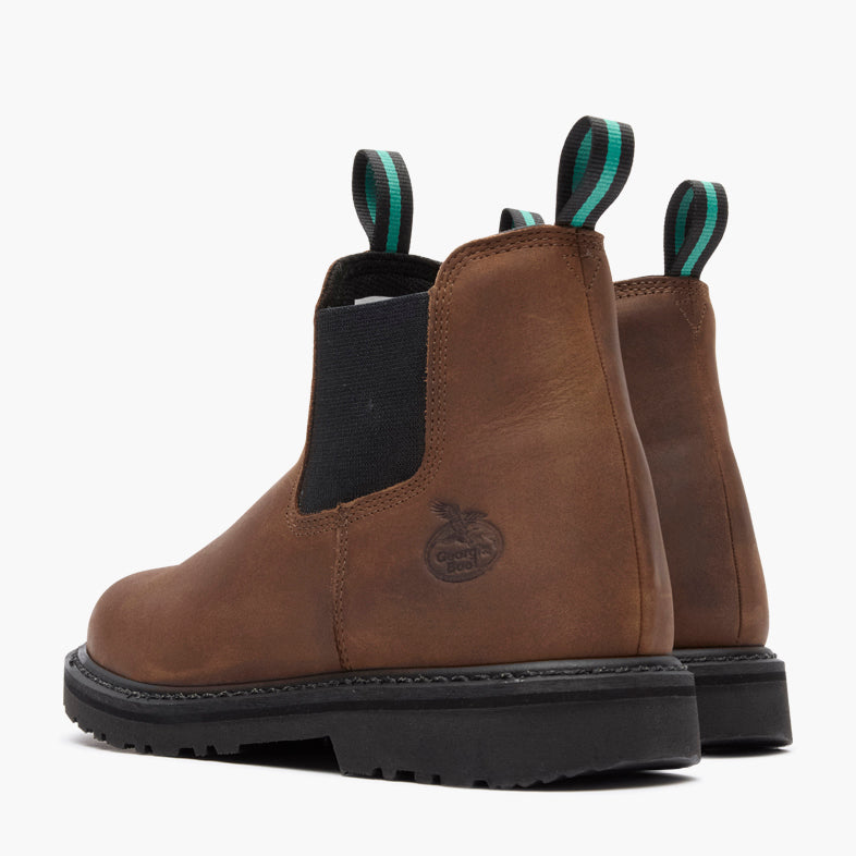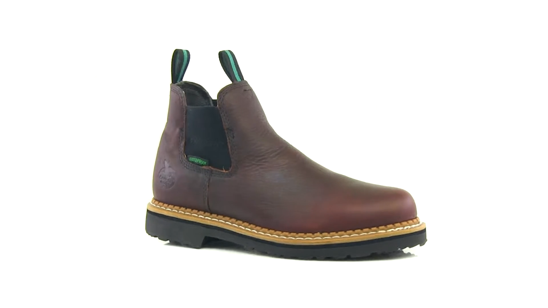 Built with rich full-grain leather, this pull-on Romeo is easy to wear thanks to twin gores and sturdy pull tabs. The polyurethane Georgia Giant outsole offers solid traction and resists oil, chemicals, and slips for dependable footing on and off the job.